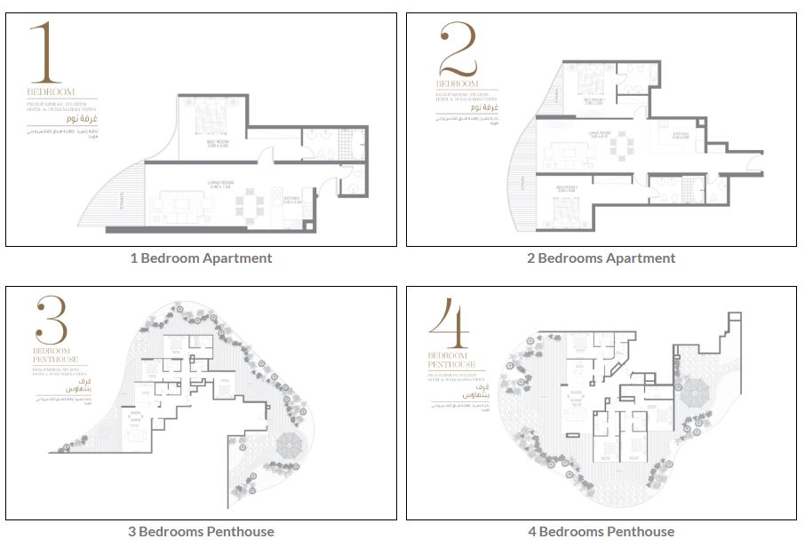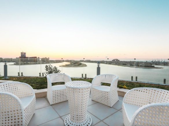 Each apartment of Royal Bay by Azizi is designed to maximize light in every single corner and provide stunning views from every room. The building is a prestigious address that provides direct access to the private beach. Many units are on one side of the building offering panoramic views of the Arabian Sea, while the apartments on the other side offer a spectacular view of the Palm Jumeirah. Each penthouse has its own swimming pool and jacuzzi. The architecture of the building includes terraces and balconies with high-end finishing.