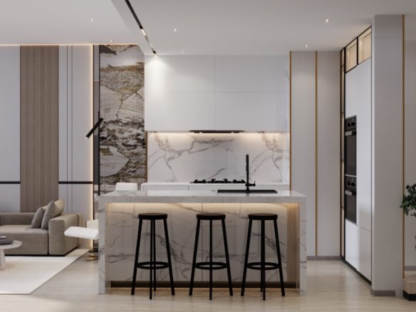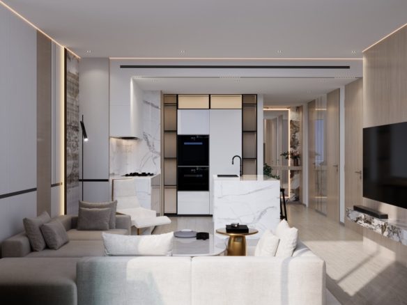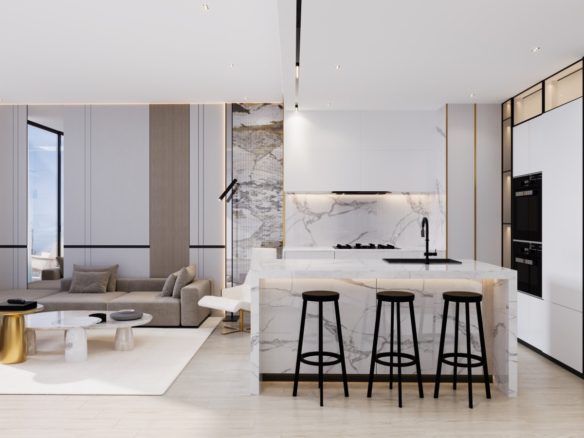 Each space is thoughtfully designed to maximize natural light and optimize spatial flow. From kitchens designed for the ones with epicurean taste to posh bedrooms, every aspect of the interior is crafted to elevate living experience to new heights of affluence.