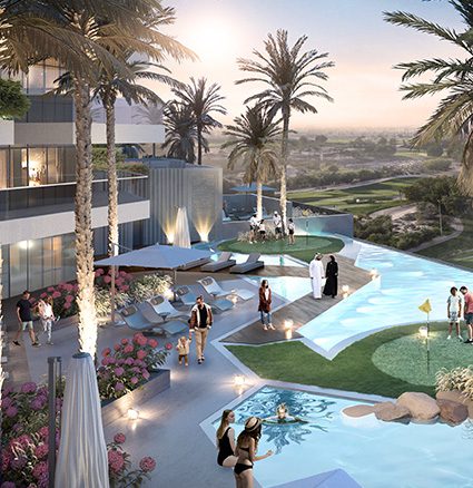 Each day at Golf Greens dawns with captivating views of the fairways at DAMAC Hills, as earthen hues and textures bring the beauty of the outdoors, inside. Golf Greens is a living sanctuary where an abundance of experiences meet the tranquillity of nature. Explore amenities like Aqua Garden, Palm Garden, Aqua Golf, Island Golf, Sky Golf, Serene Pool and a lot more.