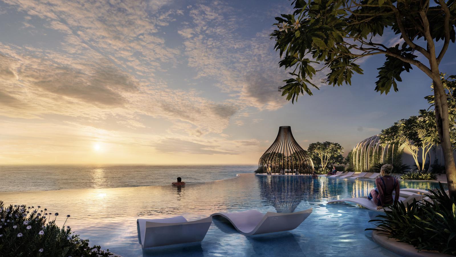 - An infinity pool with a view of the immaculate beachfront is ideal for unwinding and admiring the breathtaking scenery.