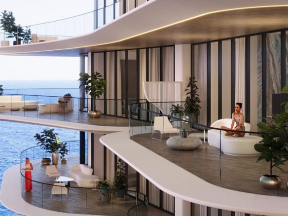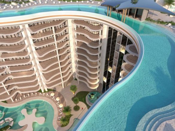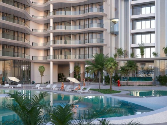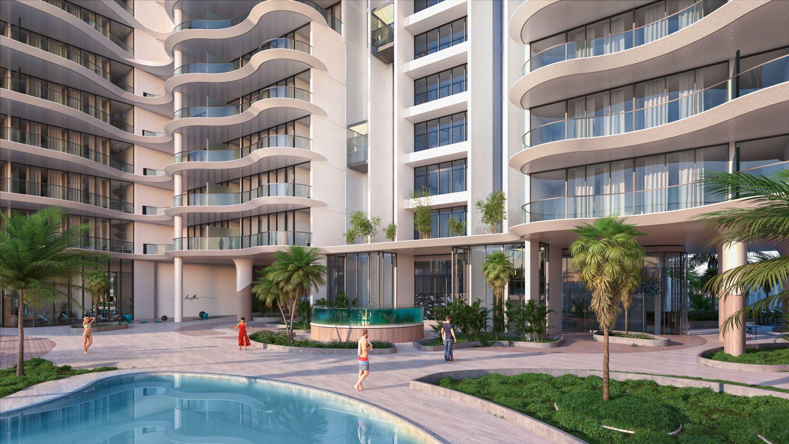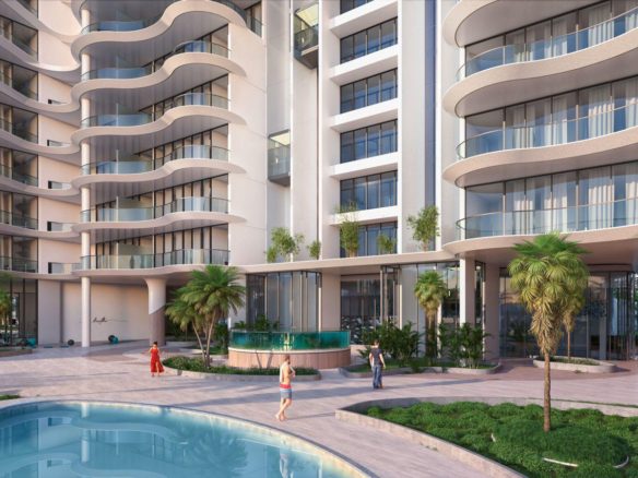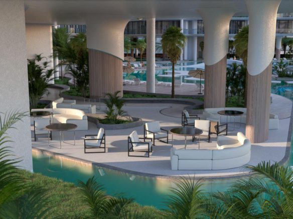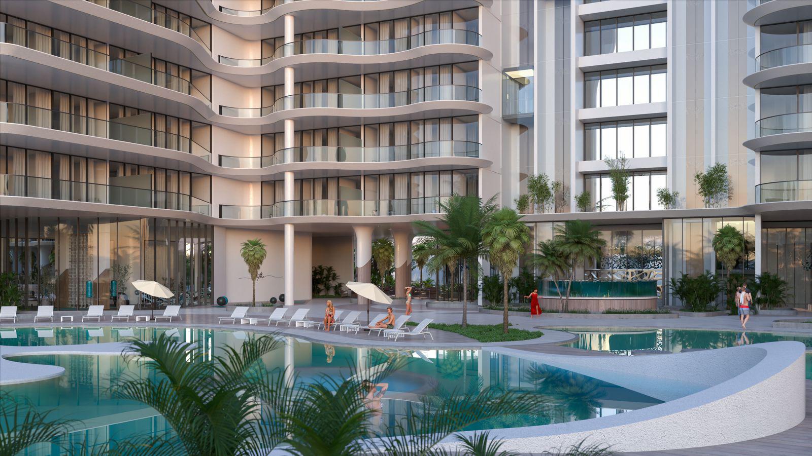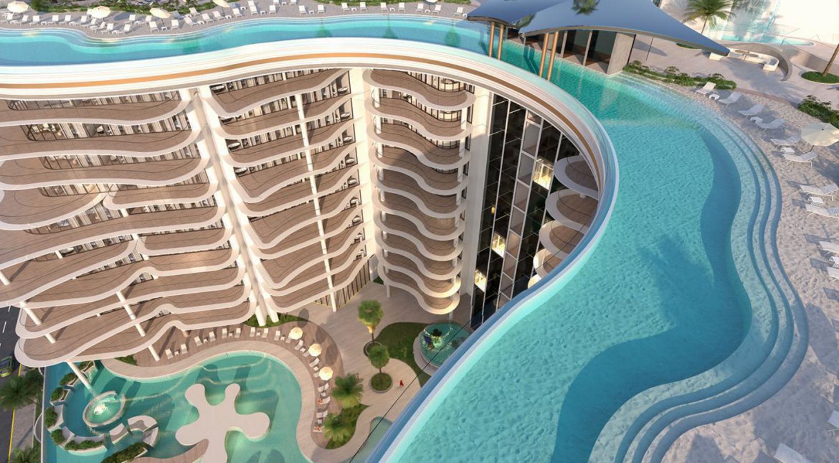 Featuring a unique beachfront, Manta Bay comprises a world-first design that includes a real sandy Sky Beach, enhancing the waterfront experience. This man-made beach has been meticulously designed to create a pristine natural coastal environment in line with the project concept, providing a unique selling point for property investors.