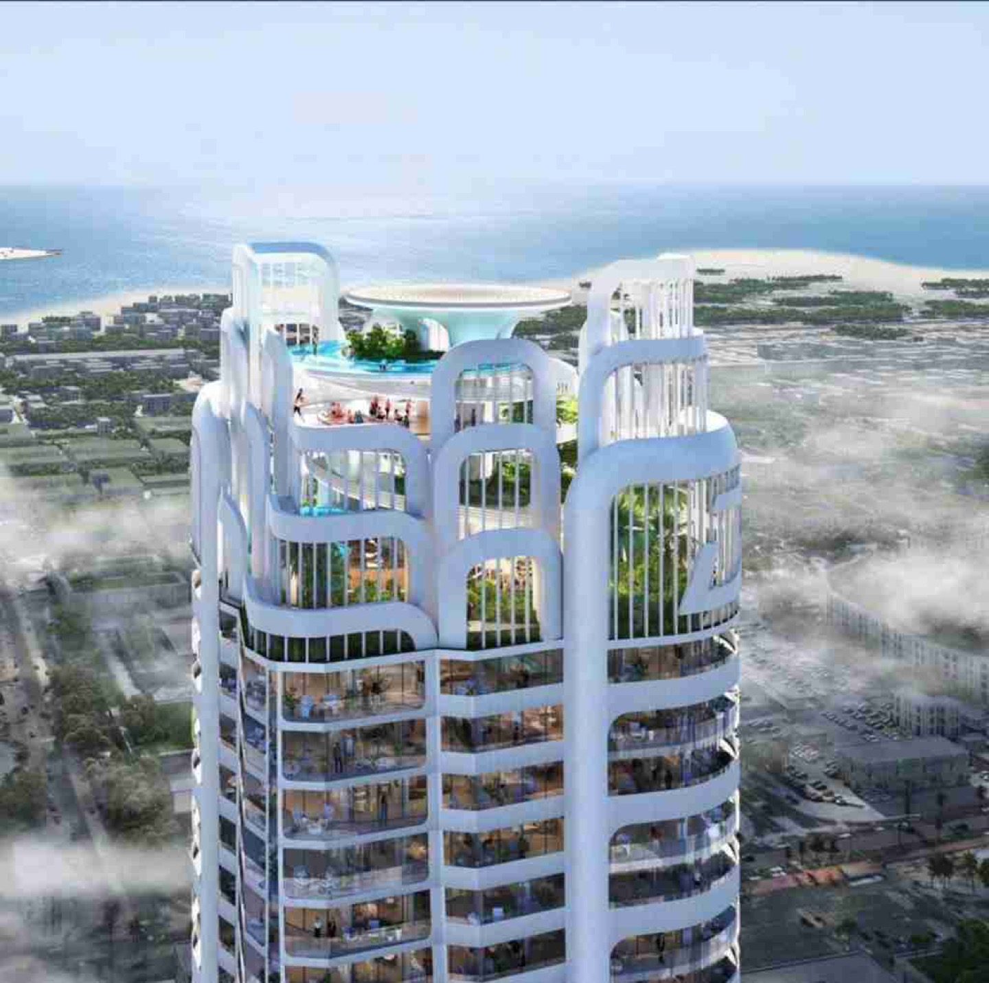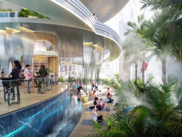 But it's not just the living spaces that make Volta exceptional. The tower and its adjoining parking podium are home to an extraordinary selection of amenities meticulously curated to cater to both an active and relaxing lifestyle. Among these offerings are lap pools, a state-of-the-art boxing ring, a climbing wall, a jogging track, ethereal sky yoga spaces, a luxurious spa, and much more. Moreover, each apartment on levels 49 to 58 boasts top-of-the-line finishes, discreetly integrated gym facilities and innovative mirror trainers.